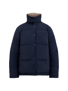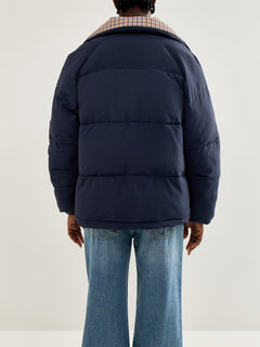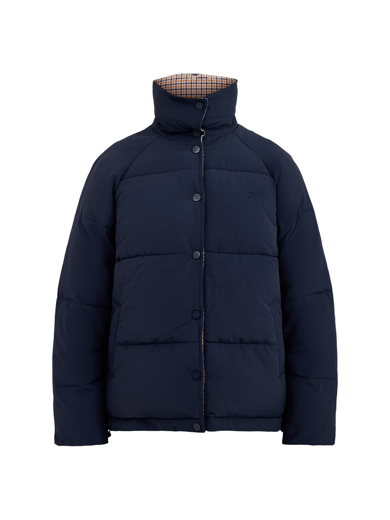 The Opal Reversible Puffer Jacket by Damson Madder delivers two looks in one. Quilted for warmth with a glossy finish, it combines function and creativity — ideal for layering through colder seasons.