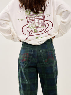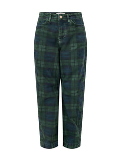 The Neve Jeans by Damson Madder are crafted from organic cotton denim, overdyed in navy check for a distinct tonal texture. Finished with contrast stitching and a structured wide-leg fit, they reflect the brand’s signature approach to responsible fabrication and modern tailoring.