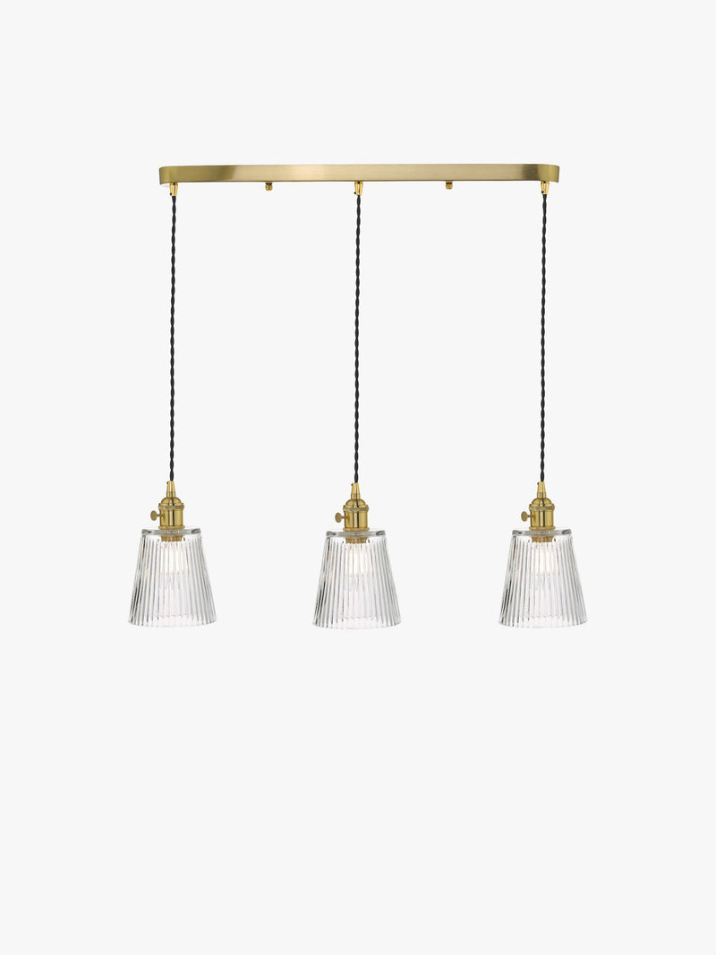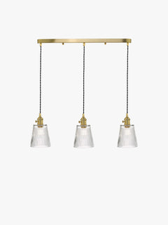 Hadano 3 Light Brass Suspension with Ribbed Glass Shades