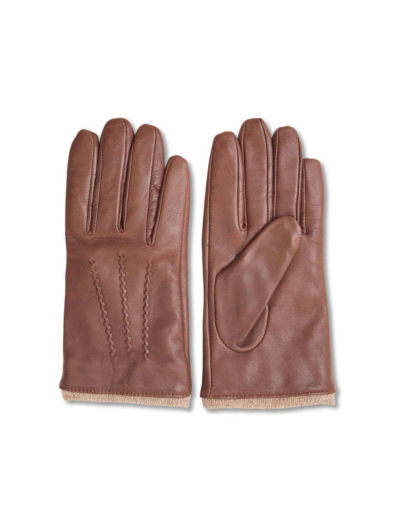 Lorraine Leather Knit Cuff Gloves Chestnut