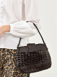 Rixo x Dragon Diffusion Amoria Woven Leather Bag Dark Brown