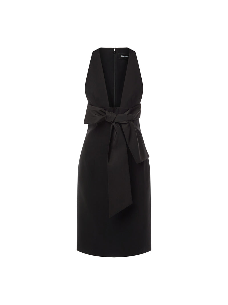 Make an entrance in this seductive crepe cady mini dress: a must-have for the party season. A statement silk bow detail wraps around the bust for added drama. Pair with a mini handbag and strappy heeled sandals.