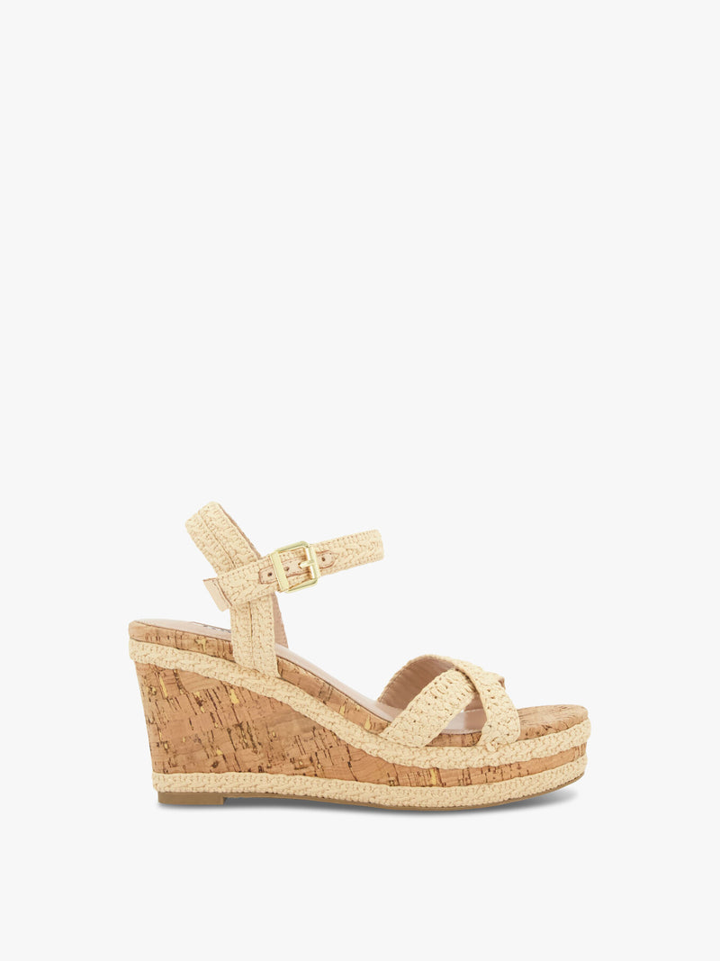 Wedge-heel sandals like Kelisia are a timeless style staple. Set on a wearable cork sole the upper culminates in two braided cross-straps and a two-part slingback with a side buckle offering dimension and support. Finished with a lined footbed for added comfort these classic heels will become an integral part of your warm-weather wardrobe.