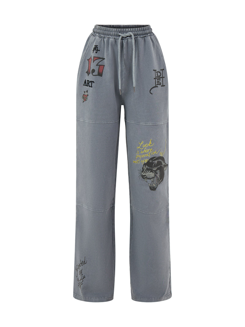 Attoo Collage Seam Detail Wide Leg Joggers Charcoal Charcoal