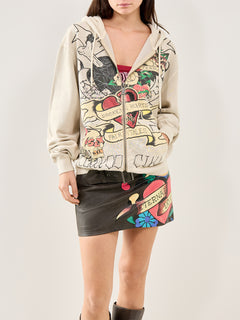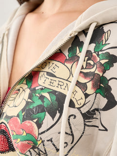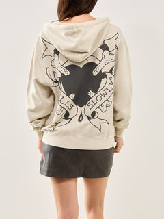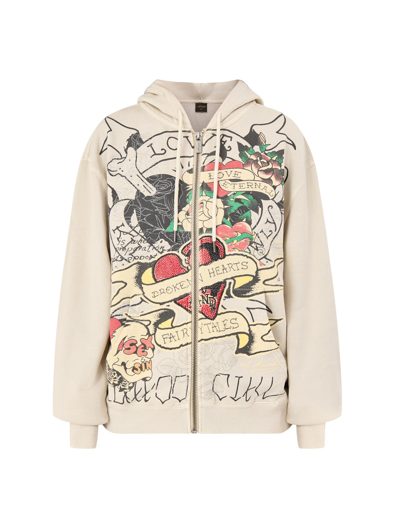 Broken Hearts Zip Hoodie Ecru