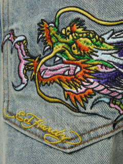 These Dragon Crawl Relaxed Denim Shorts offer a comfortable fit with a relaxed cut, perfect for casual wear. Crafted from durable denim, they provide lasting quality and a timeless style that pairs well with a variety of outfits. Ideal for warm weather, these shorts combine ease of movement with classic denim appeal.