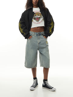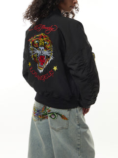 The La-Tiger-Roar Bomber Jacket combines bold style with practical comfort. Designed with a striking tiger roar motif, this jacket offers a unique statement piece for your wardrobe. Its durable fabric and classic bomber silhouette provide warmth and versatility, making it suitable for various weather conditions and casual occasions.