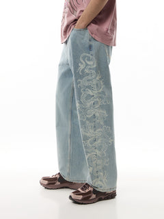 Laser Etched Dragon Repeat Denim Trousers Jeans