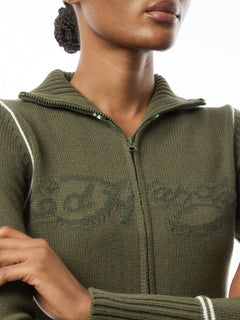 Life Before, Legacy Forever: Meet the Women's Life Before Knitted Zip Thru Jacket.Crafted from fine rib knit, contrast colour seams, zip fastening, a tonal Ed Hardy signature jacquard knit spanning the chest.