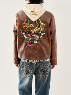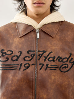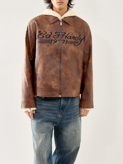 The Vegan Leather Zip Jacket by Ed Hardy is crafted in smooth faux leather with a clean zip front and sharp seasonal appeal. A modern layer that adds structure to off-duty styling.