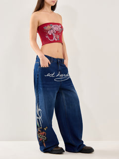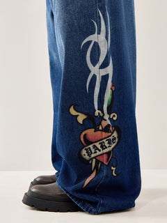The Paris Denim Jeans by Ed Hardy are cut to a flattering straight-leg fit in indigo wash denim. Embroidered with tonal logo details, they bring a nostalgic streetwear feel to everyday dressing.