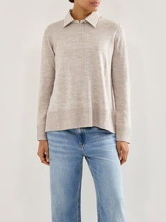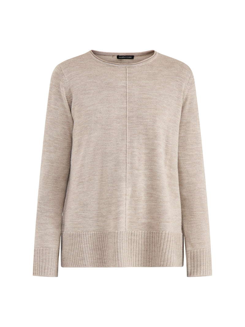 The Crew Neck Sweater by Eileen Fisher is spun from organic cotton in a soft maple-oat shade. Designed with dropped shoulders and ribbed trims, it pairs everyday ease with refined texture and enduring style.