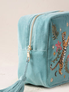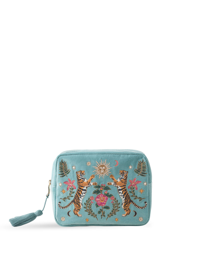 Celestial Tigers Velvet Wash Bag Dusky Teal