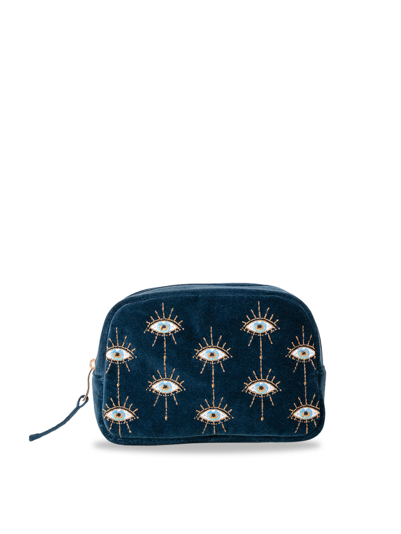 Mystical Eye Velvet Makeup Bag Ink Blue