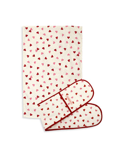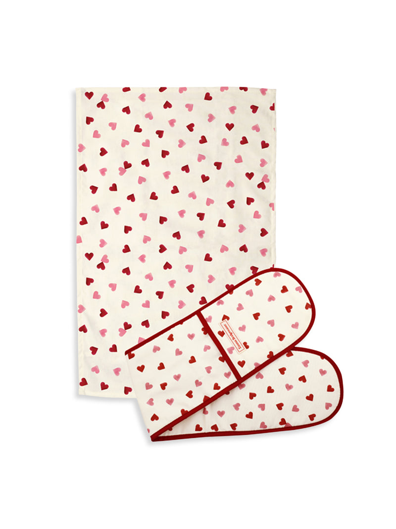 Pink Hearts Oven Glove and Tea Towel Set