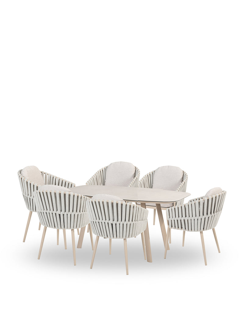 Eva 6-Seat Outdoor Dining Set with Manolo 180cm Barrel Ceramic Table