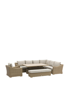 Fairford Rattan L-Shape Sofa with Rectangle Piston Adjustable Height Table Bench & Chair