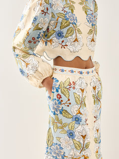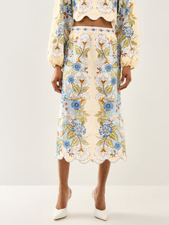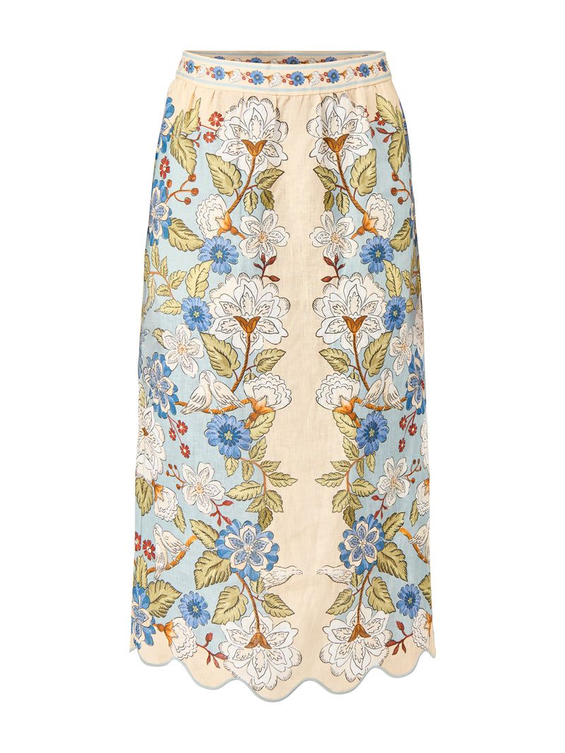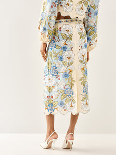 Garden Scarf Blue Midi Skirt