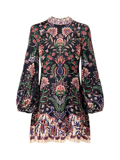 The Garden Mini Dress Black by Farm Rio is tailored from lightweight viscose with a botanical print and gentle gathers for movement. This printed mini dress styles easily with boots and a knit for autumn, or sandals on warmer days.