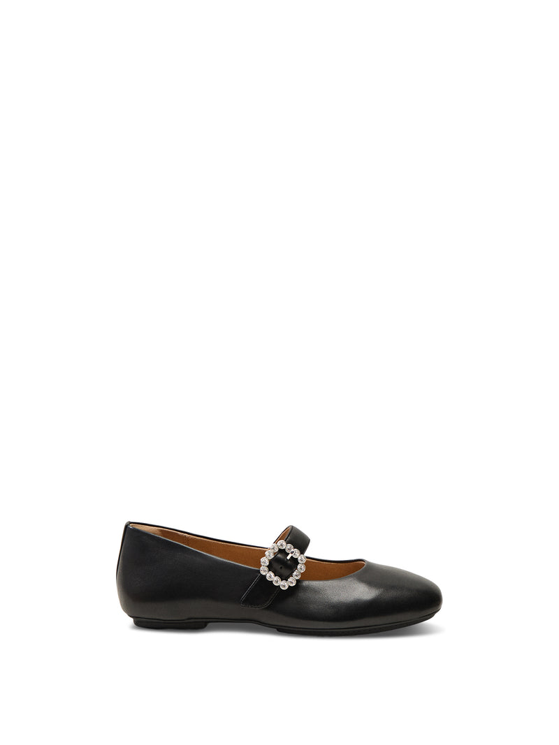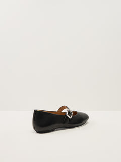 Delicato Crystal-Buckle Leather Mary Janes Black