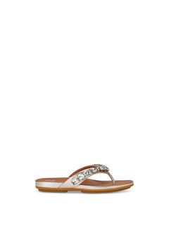 The Gracie Jewel Del Metallic Flip Flop features an embellished metallic upper that adds a touch of sparkle and sophistication. This design combines casual comfort with elegant detailing, perfect for elevating everyday looks.
