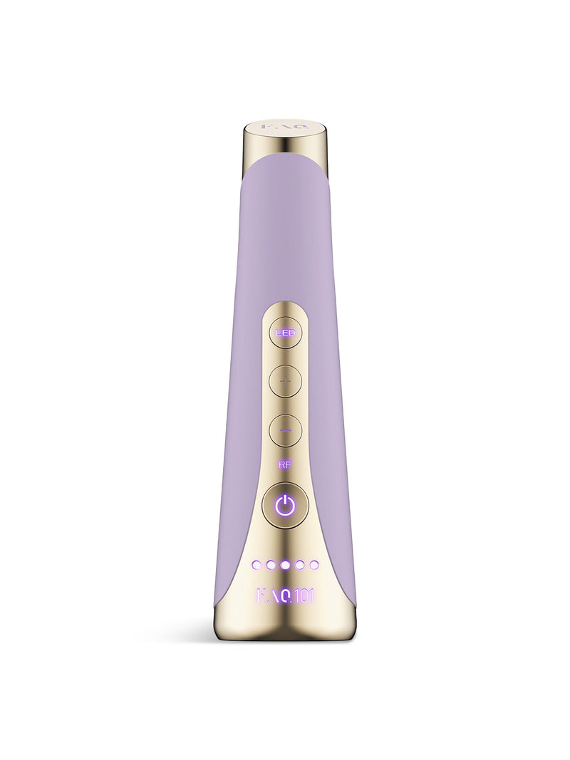 A DARING NEW SWISS BEAUTY-TECH INNOVATION : Step into the unexplored areas of clinical-grade anti-aging. The FAQ 101 is an ideal entry into the power-RF & LED-pulse pro treatments, featuring heated radiofrequency waves & pulsed red, green & blue LED lights and T-Sonic pulsations.