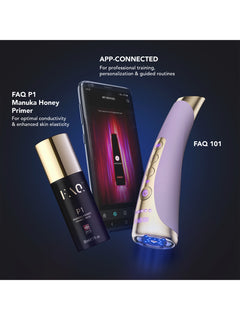 - How to Apply: Download faq Swiss App unlock register your device before first use. Clean dry face neck apply faq p1 primer. Press hold universal button for 3 secs to turn on device. Adjust rf led lights to preference. Press device base to face glide as shown in the How