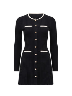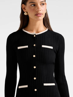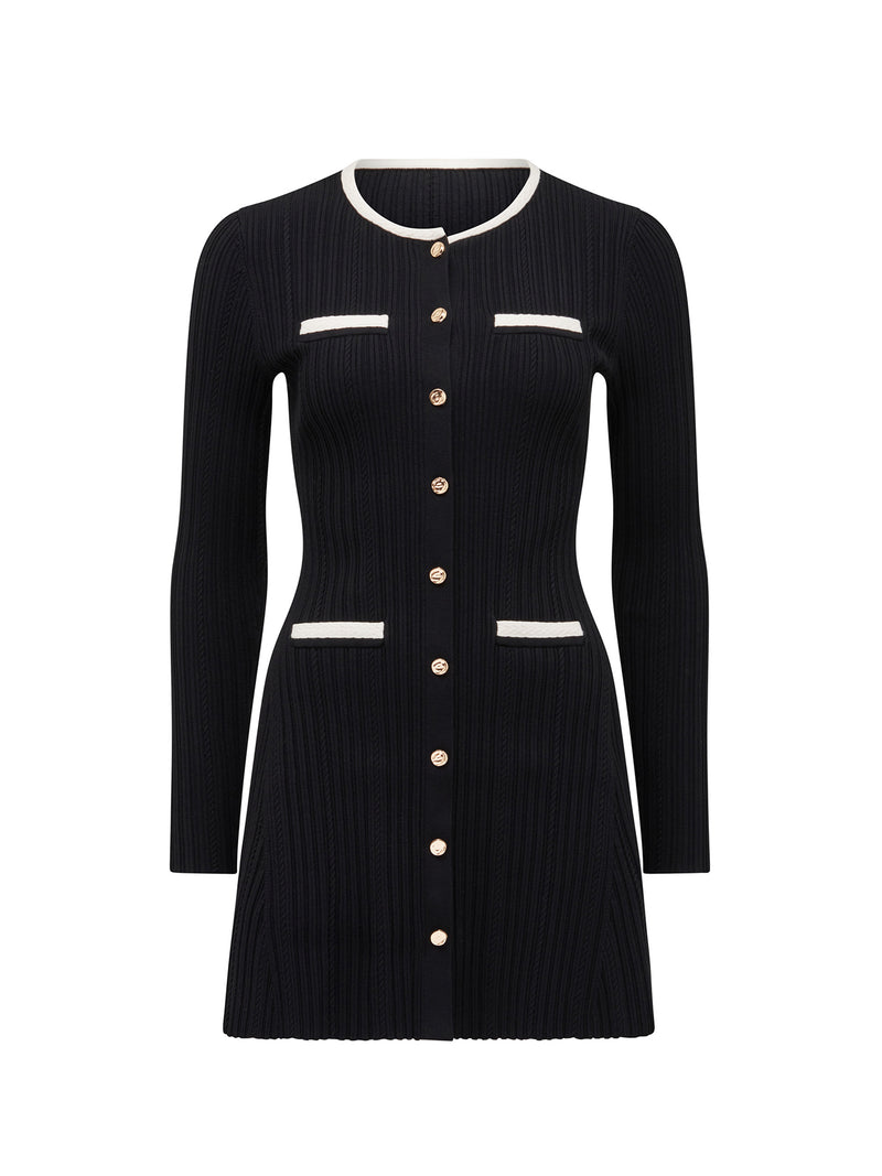 The Brielle Fit and Flare Mini Dress by Forever New defines the upper body before opening into a softly flared hem. A modern knit silhouette that balances femininity with clean structure.