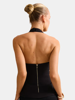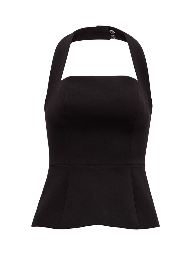 The Kendall Halter Neck Top by Forever New is a timeless wardrobe staple. Crafted from a soft stretch fabric with a sleek high neckline and open back, it creates a modern, flattering silhouette for day or evening dressing. Style it with tailored trousers or denim for effortless sophistication.