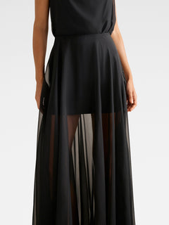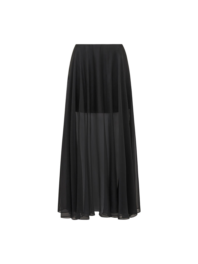 The Lisette Sheer Maxi Skirt features a lightweight, sheer fabric that offers an airy and elegant look. Its maxi length provides a flowing silhouette, making it a versatile piece suitable for both casual and dressier occasions. This skirt combines delicate style with comfortable wearability.