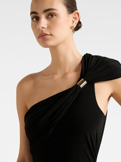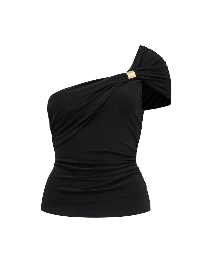 The Robyn Hardware One Shoulder Top offers a modern, asymmetrical design that adds a contemporary edge to any wardrobe. Crafted to provide a comfortable fit, this top features a single shoulder strap that creates a distinctive silhouette. Ideal for both casual outings and dressier occasions, it combines style with versatility, making it a practical addition to everyday wear.