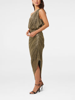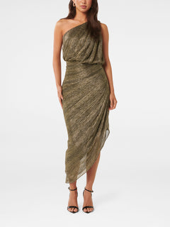 Dress up in style with the Cassidy One Shoulder Plisse Midi Dress. Perfect for any occasion, this one shoulder dress adds an elegant touch to your look. The midi length makes it versatile for both day and evening events. Look and feel your best in this chic and sophisticated piece.