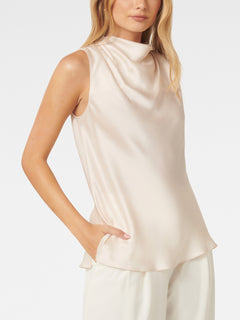 Feminine glamour meets trending details in these uniquely Melbourne designs. Known for quality, this brand creates clothing and accessories you'll wear season after season. Explore the collection and find something for every moment and occasion. The Sallie Satin Cowl-Neck Tank is the update your wardrobe has been waiting for. This garment contains recycled polyester, which reuses existing plastic material. This reduces reliance on virgin materia