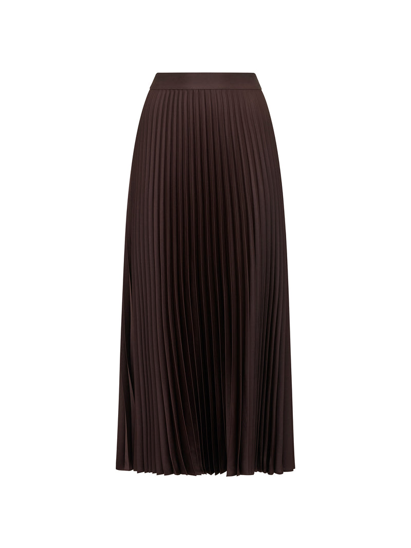 Estelle Satin Pleated Midi Skirt Chocolate