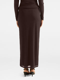 The Mia Mesh Maxi Skirt features a fitted silhouette crafted from breathable mesh fabric. Its maxi length offers elegant coverage, making it a stylish and comfortable choice for various occasions.