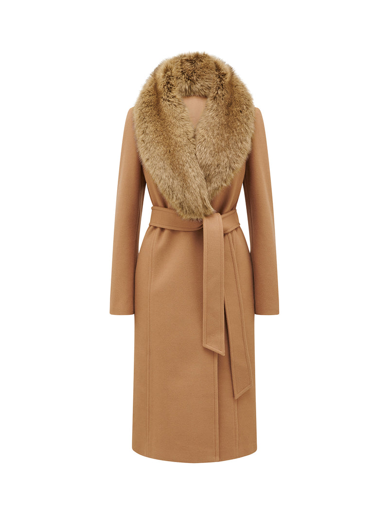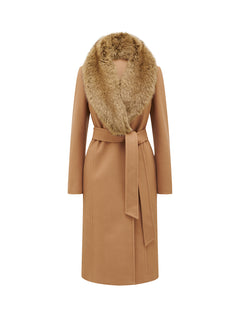 Monica Faux Fur Wrap Coat Camel