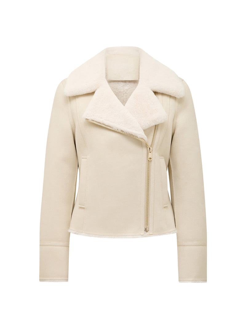 Penny Faux Fur Aviator Jacket Cream