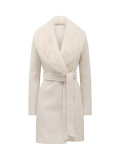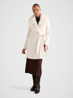 Rocky Faux Fur Collar Wrap Longline Coat Cream