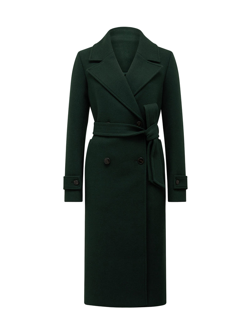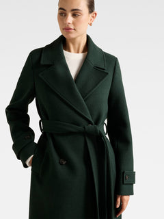The Cara Double Breasted Wrap Coat by Forever New is cut with a refined wrap closure to define the waist and sharpen the silhouette. Tailored lapels and fluid drape deliver considered proportion for modern everyday layering.
