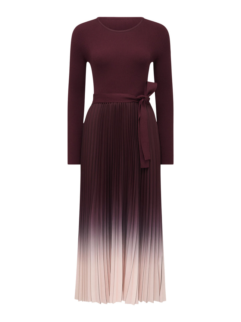Mulberry OmbreMulberry Ombre Harmony Crew Neck Ombre Pleated Midi Dress
