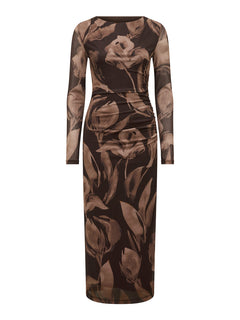 The Alannah Mesh Midi Dress by Forever New is rendered in soft stretch mesh with long sleeves and a softly sculpted line. The drape and subtle sheerness lend modern femininity - an expressive evening silhouette with refined presence.