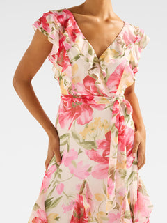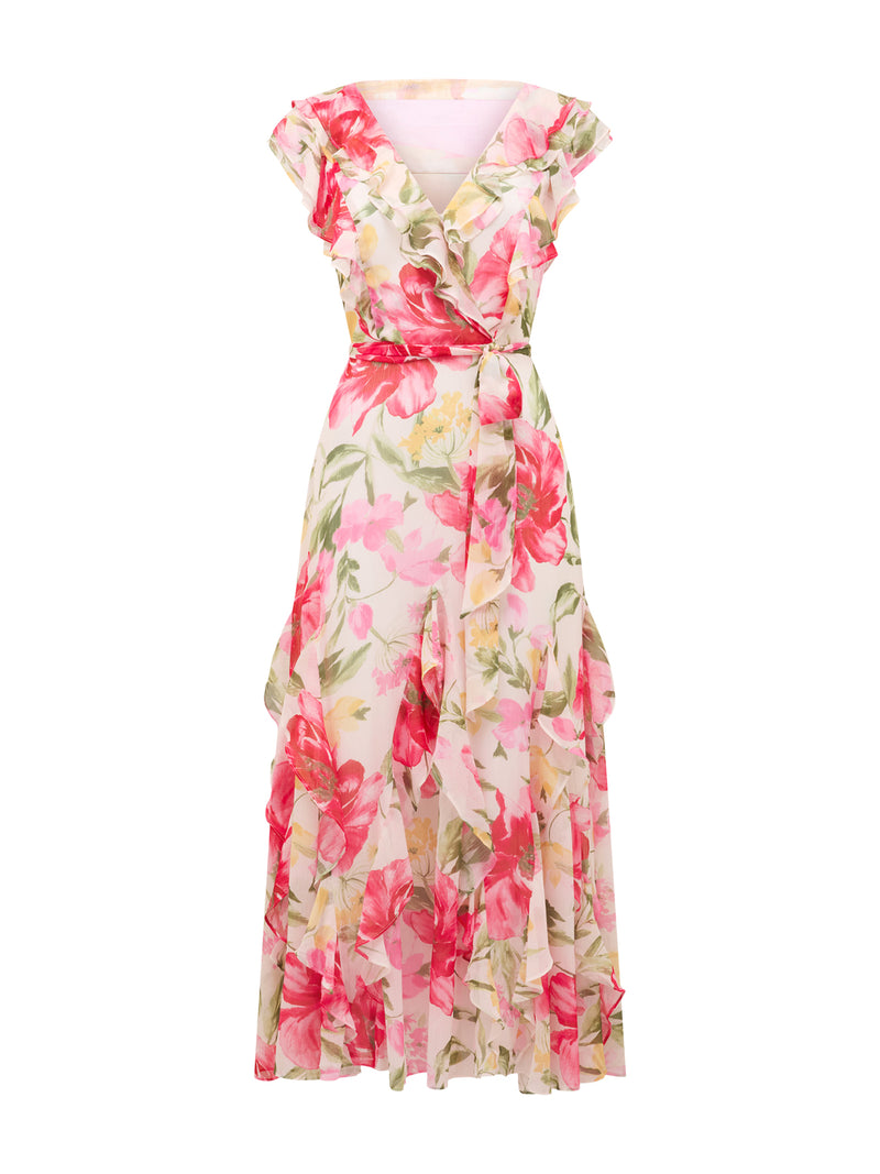 The Naya Ruffle Midi Dress by Forever New is crafted from soft polyester, offering a comfortable and lightweight fit. Its elegant ruffle detailing adds a feminine touch, making it perfect for both casual outings and special occasions. This versatile midi dress combines style and ease, ensuring you look effortlessly chic.
