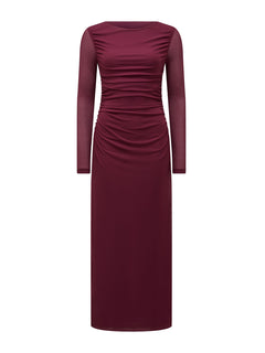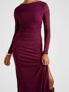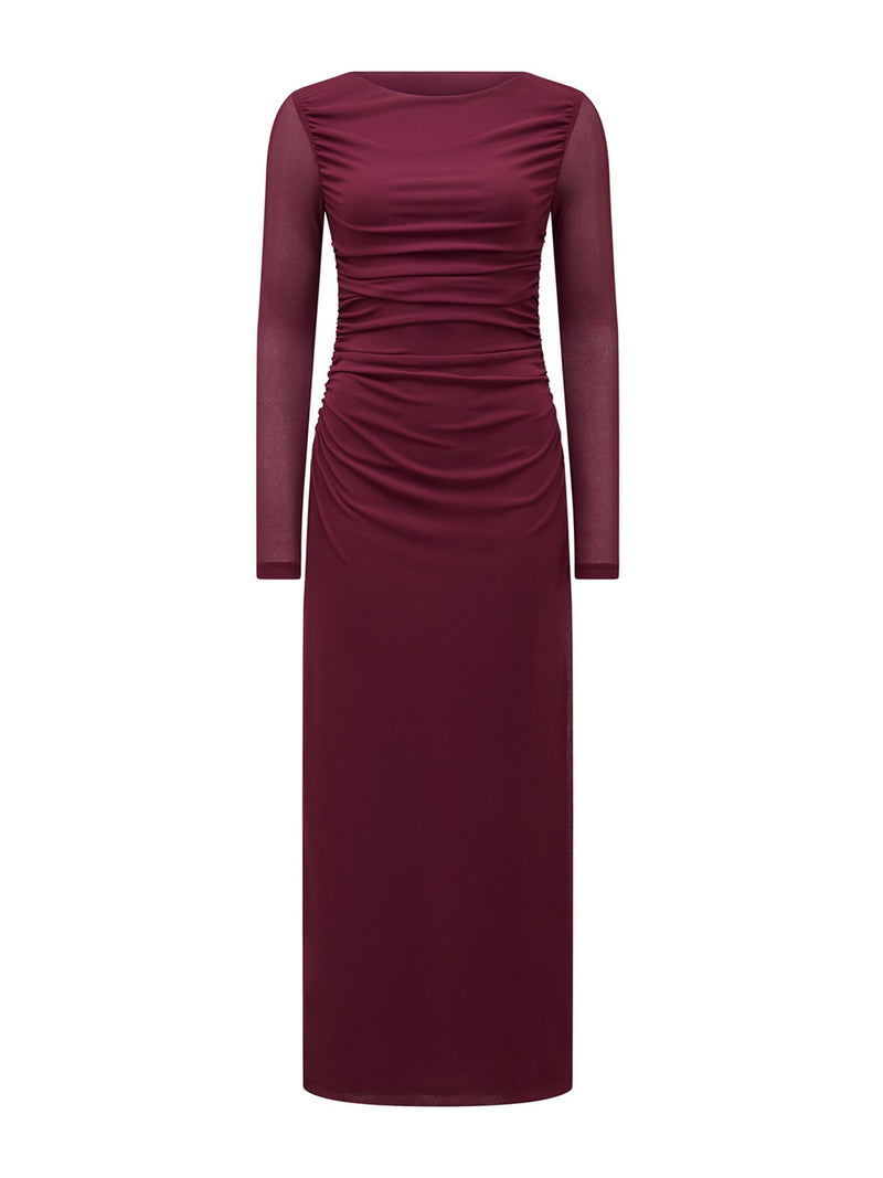 Brittany Gathered Mesh Midi Dress Purple