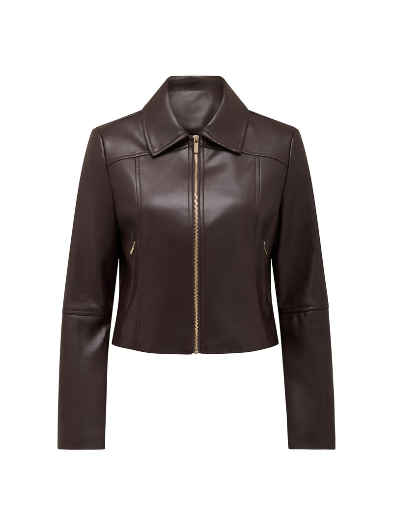 The Addison Vegan Leather Jacket by Forever New pairs sleek structure with refined hardware. A directional layer designed to sharpen knitwear, dresses or trousers.