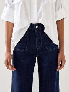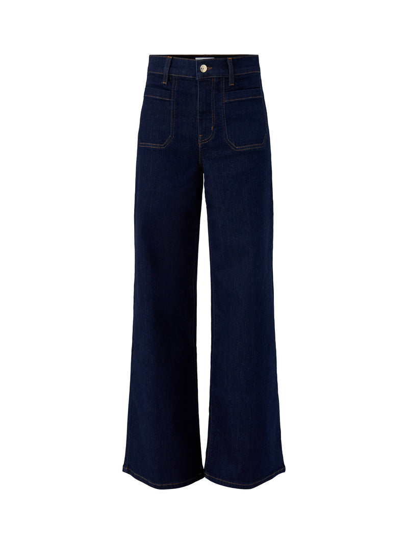 Le Slim Palazzo Modernist Pocket Denim combines a slim fit with the relaxed silhouette of palazzo pants, crafted from high-quality denim. Featuring functional pockets, this design balances contemporary style and practicality, making it suitable for versatile, everyday wear.