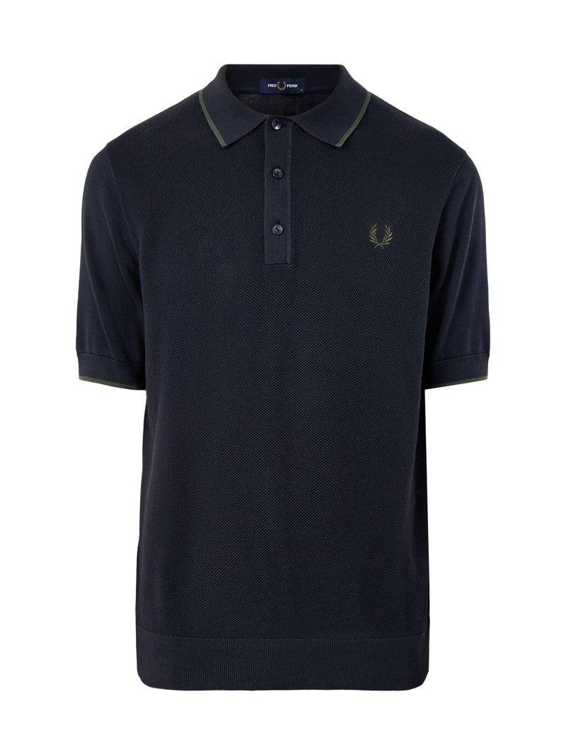 Pique Stitch Knitted Polo Navy