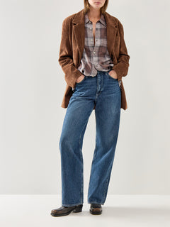This Paper Cut Vegan Blazer in brown from Free People is crafted from polyester for a cruelty-free, sustainable alternative to traditional leather blazers. Its sleek design offers a polished look while remaining lightweight and comfortable, making it ideal for both work and casual wear. The blazer combines ethical fashion with versatile style, providing an easy way to elevate your wardrobe while supporting vegan principles.