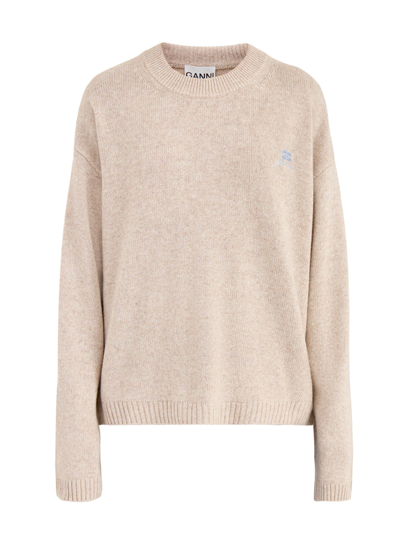 The Future Oversized Jumper by Ganni is spun from a recycled wool blend in sand beige. Designed with a generous silhouette and ribbed trims, it’s the ultimate layering knit for effortless everyday wear.