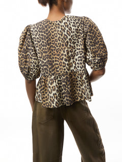 Leopard Cotton Poplin Peplum Blouse