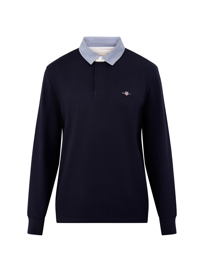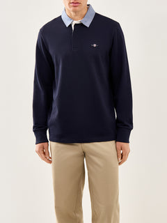 The Chambray Heavy Rugger by GANT revisits a collegiate icon. Made from heavyweight cotton jersey with a contrast chambray collar, it bridges classic rugby detailing with everyday wearability. A durable, relaxed piece for weekend layering.